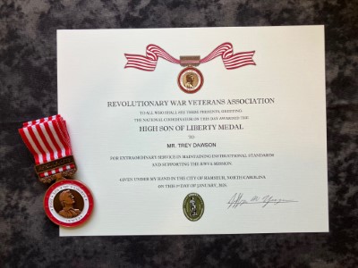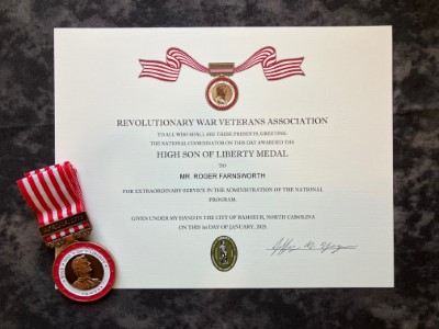 Background: After two years of planning, the High Son of Liberty Medal was established in 2024 in advance of the 20th anniversary of the RWVA. It is awarded at the discretion of the National Coordinator after consulting with the Appleseed Oversight Committee.